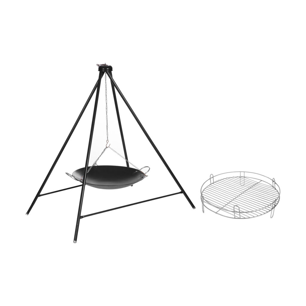 • مجهز به سه عدد زنجیر مستحکم جهت نگهداری توری گریل و ساج بر روی سه پایه