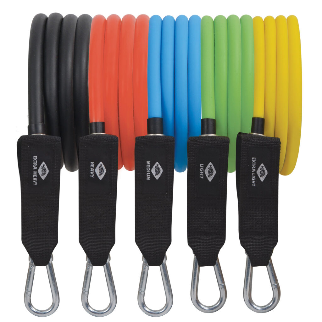 سایر توضیحات: ۵ رشته کش لوله ای دارای ۱۰ عدد کارابین تقویت شده که در هر طرف کش قرار گرفته و ۲ عدد دستگیره و ۲ عدد مچ بند چسبی دست و پا و ۱ عدد گیره برای نصب پشت درب و ۱ عدد کیسه برای حمل.