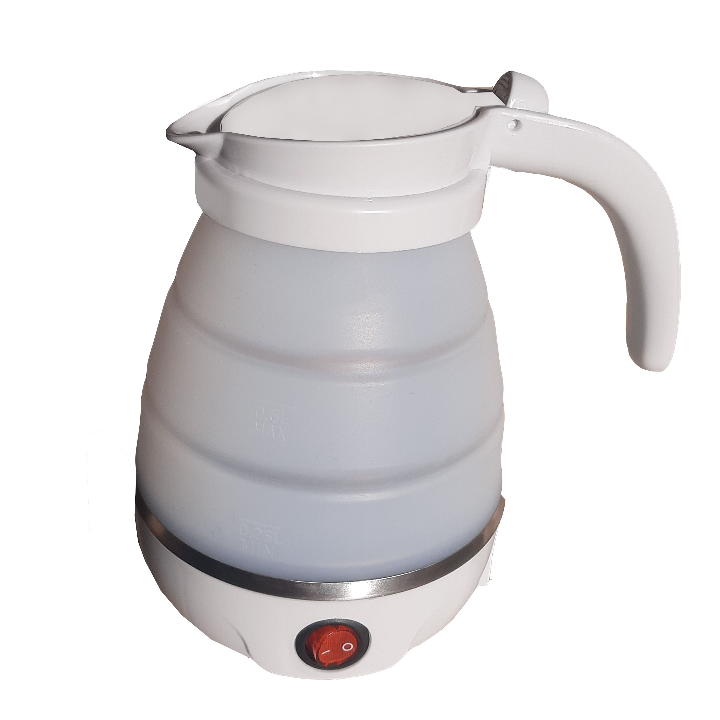 حجم این کتری برقی تاشو 600 سی سی میباشد و با برق شهری کار میکند.