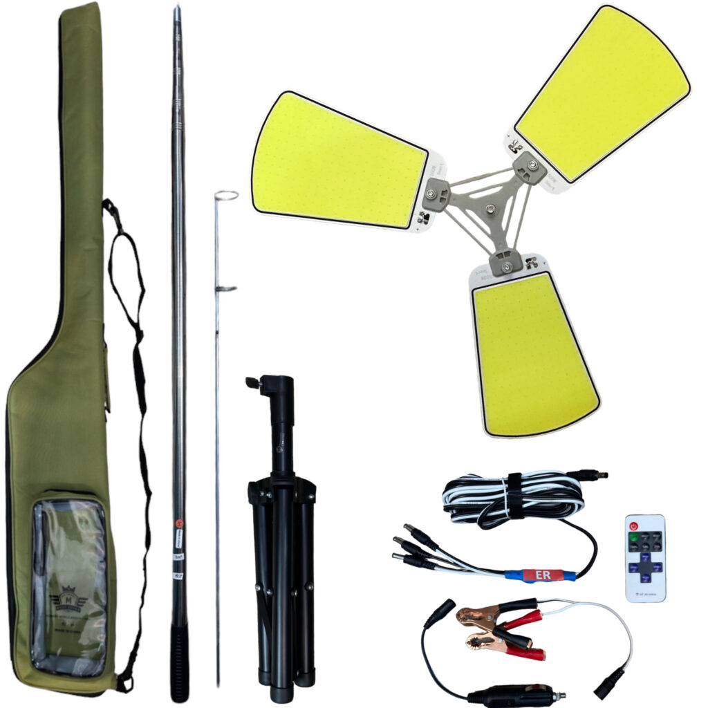 سایر توضیحات: این چراغ کمپینگ مجهز به دو مدل پایه جهت قرار گرفتن روی زمین است : 1- پایه جهت قرار گیری در زمین خاکی یا شنی است 2- پایه دیگری (سه پایه ) جهت استفاده روی آسفالت و یا موزاییک