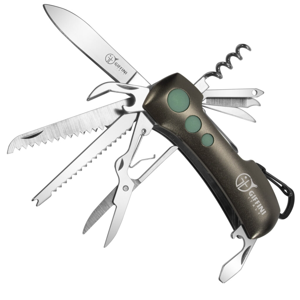 ابزارهای همراه: چاقو, قیچی, در بازکن بطری, چوب پنبه بازکن, سوهان ناخن, پیچ گوشتی چهارسو, اره